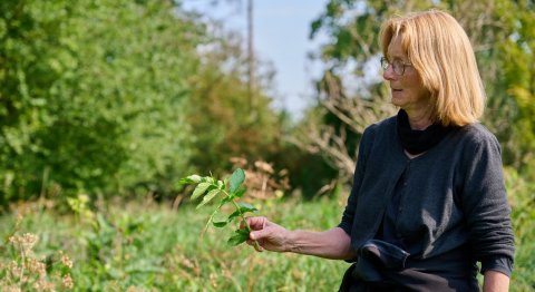 Naturvejleder Lise M Kristiansen guidede os rundt i reservatet - på opdagelse efter efterårets vilde, spiselige planter, nødder, bær og frugter.
