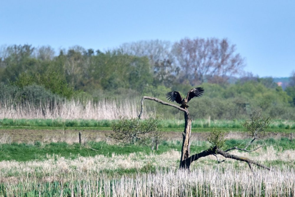 Ved 11-tiden gik turen videre til parkeringspladsen ved Brøstrup Å. Her var også en del spændende til fuglelisten: Grågås, Knopsvane (på rede), Gransanger, Løvsanger, Rørsanger, Sivsanger, Pibeand, Skeand, Havørn. Og Ringdue.